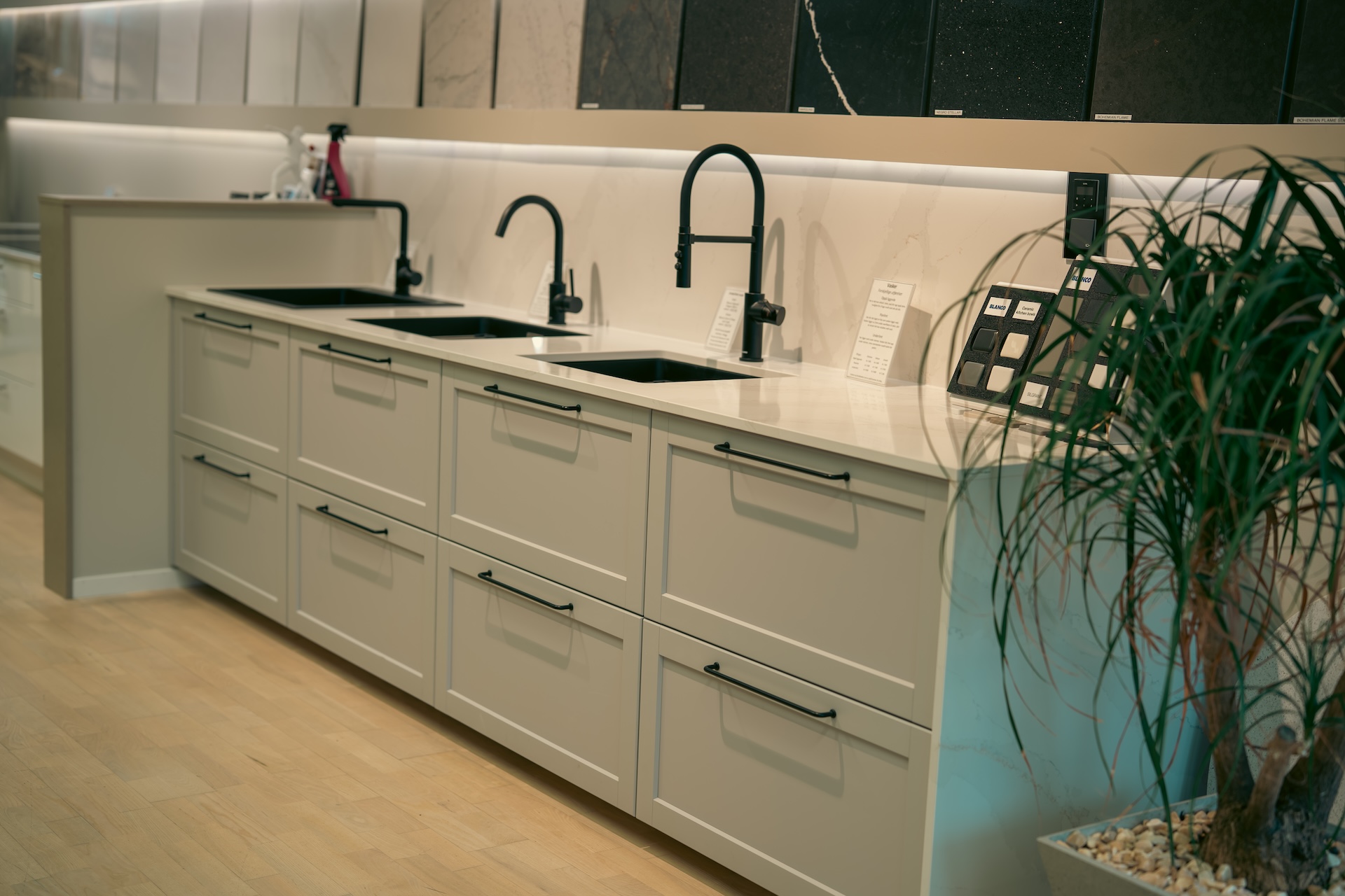 Vi har et stort utvalg av benkeplater i ulikt materiale og finish. Enten du foretrekker naturstein, høyglans eller ultramatt overflate – her finner du riktig materiale for ditt rom.
