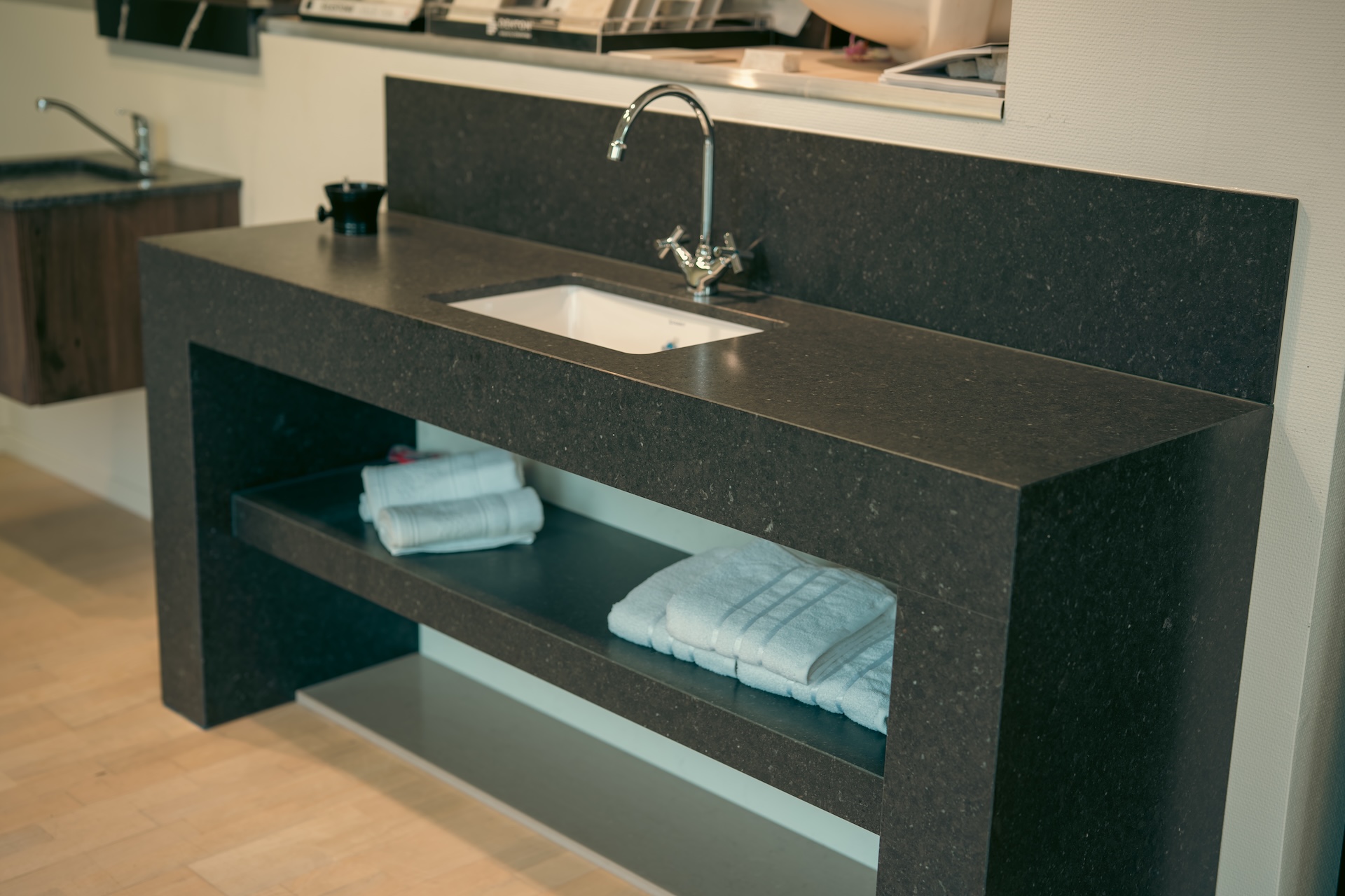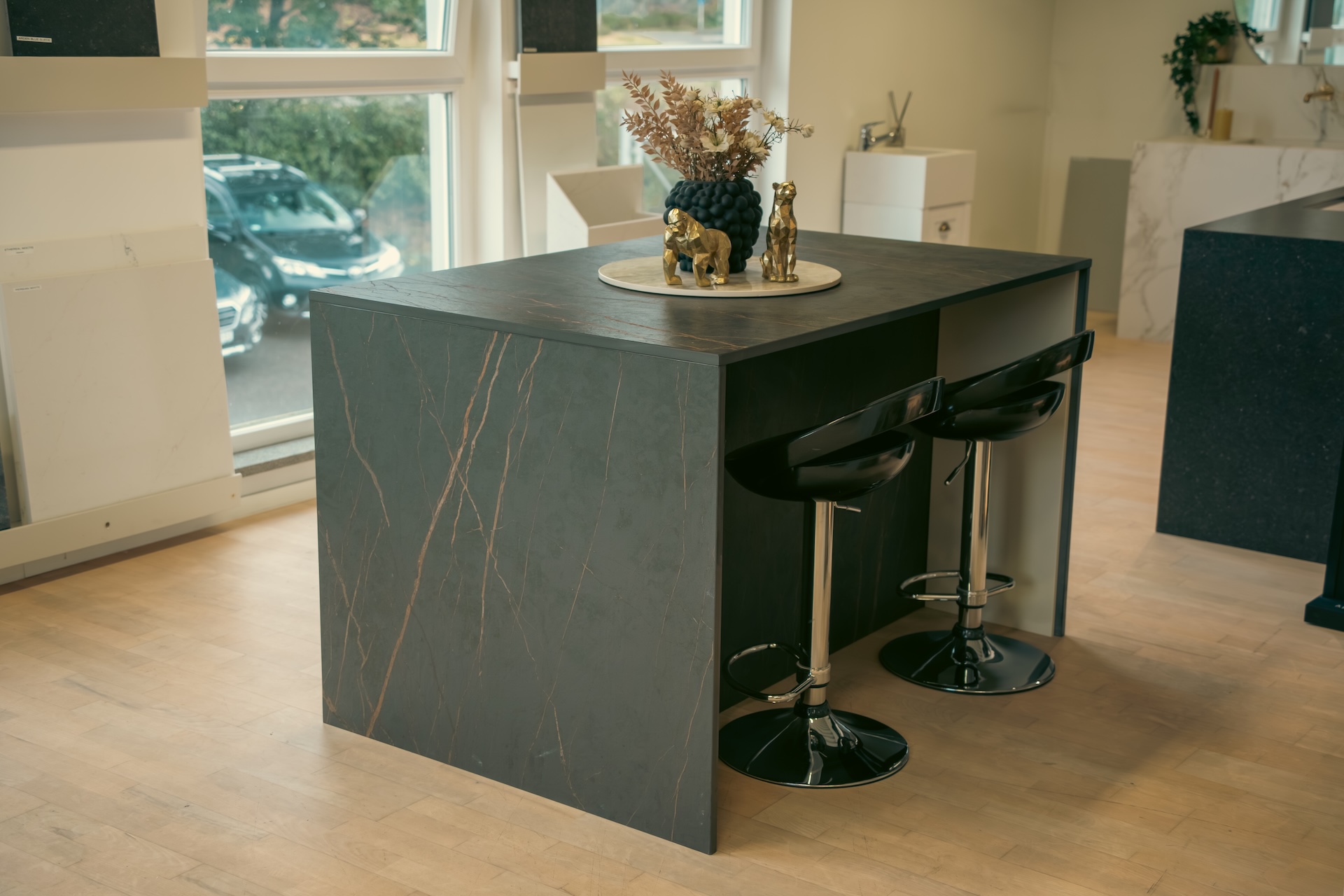 Vi fører et bredt utvalg av benkeplater i granitt, Silestone og Dekton.
